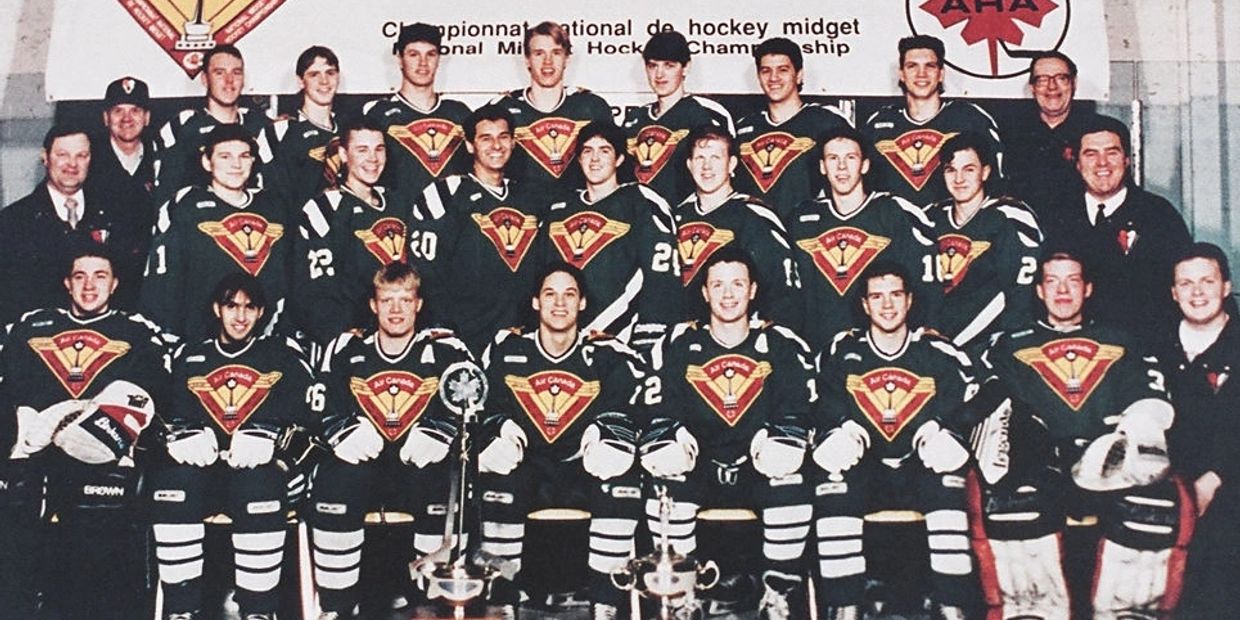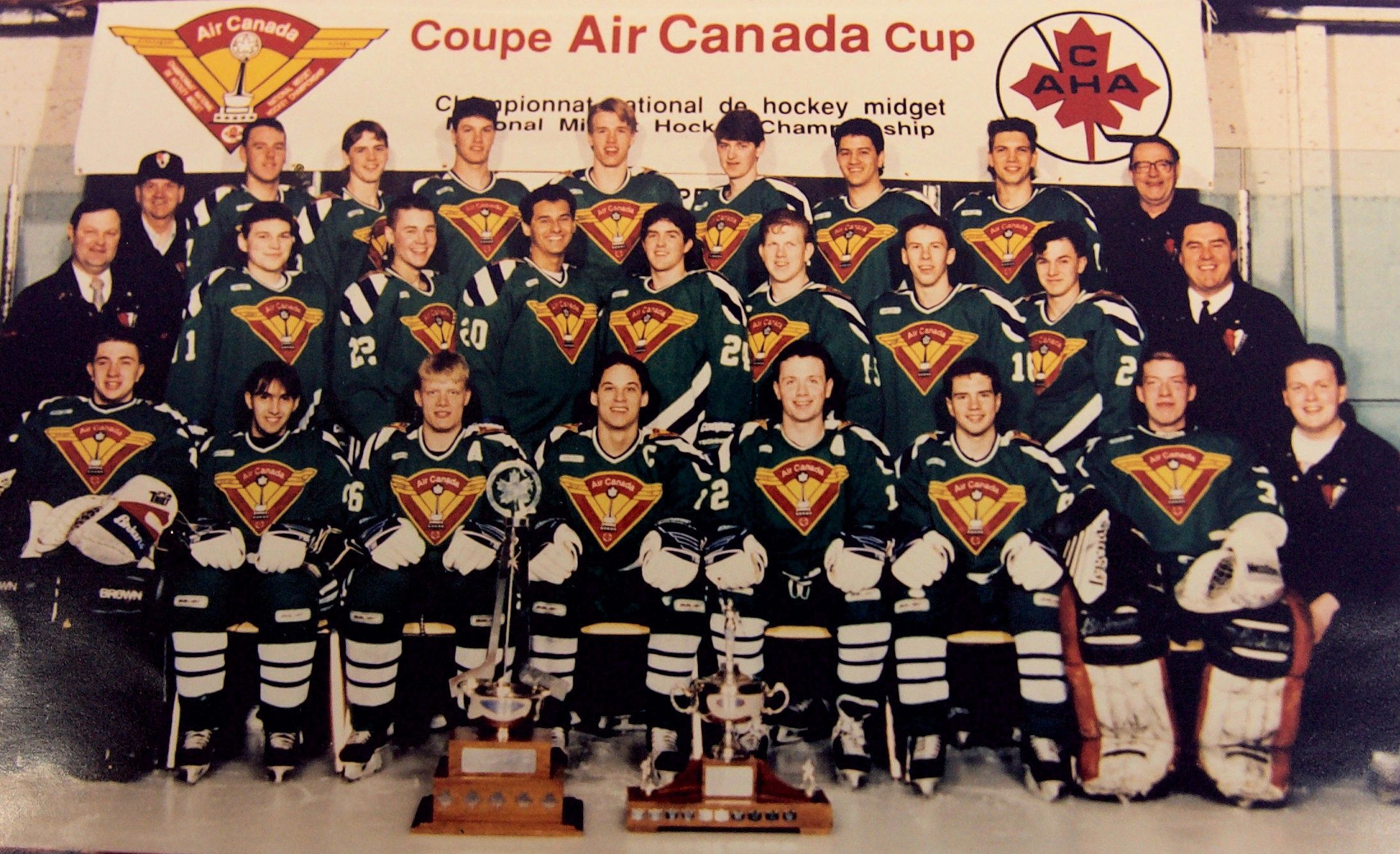 The 21 young men of the Parkland Mallers (ages 15, 16, and 17) together with their coaches and managers won the 1992-93 Air Canada Cup, emblematic of superiority in hockey at the Midget AAA level in Canada.