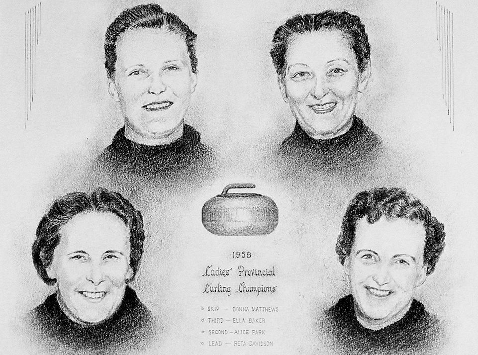 The team consisted of Donna Matthews, Ella Baker, Alice Park and Rita Davidson. In 1958, each having played on Yorkton rinks in club competition and having had local success, Donna Matthews, Ella Baker, Alice Park and Reta Davidson teamed up in an attempt to slide and sweep their way into higher levels of curling competition. And they succeeded.